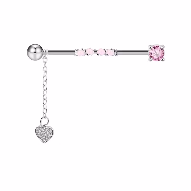 Ett stilrent smycke med vertikal stav dekorerad med rosa stenar.